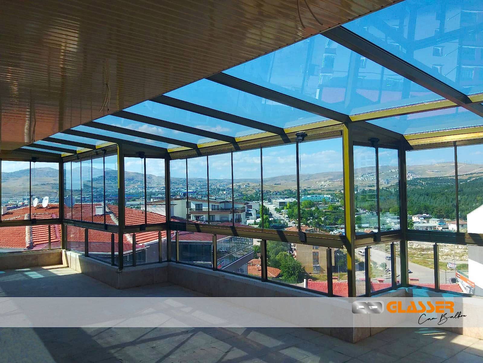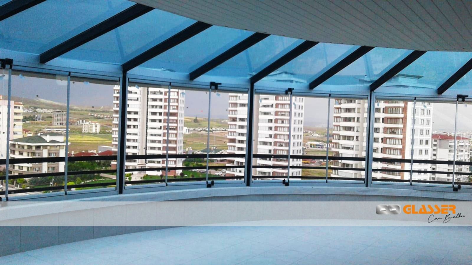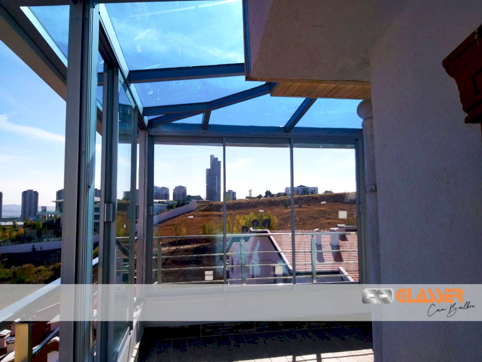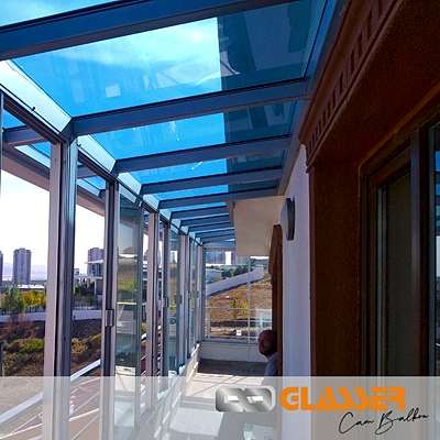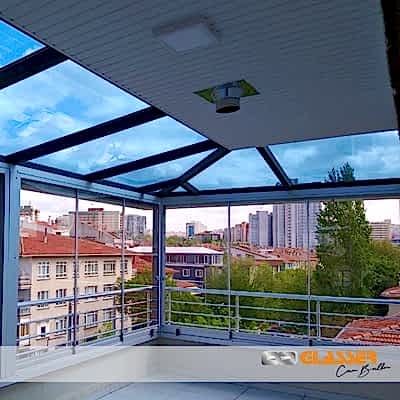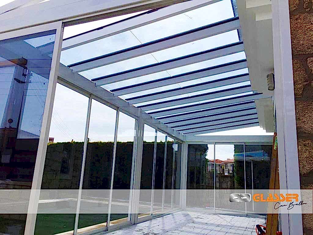 Camlı teras kapatma sistemleri özellikle güneş ışığı ve enerjisi istenen yerlerde uygulanan belli oaranda güneş kırıcılı ve renkli camlar kullanılarak yapılan uygulamamızdır. Teras etrafına sürme cam, cam balkon ,alüminyum ya da pvc doğrama uygulamalarına uygun yapılmaktadır.Sistem çelik konstrüksiyonlu yapılıp kar yüküne rüzgara karşı dayanıklıdır Sistem etrafına çekme oluk yapılıp yağmur gider boru bağlantıları yapılmaktadır sisteme çatı çıkış penceresi uygulanabilir