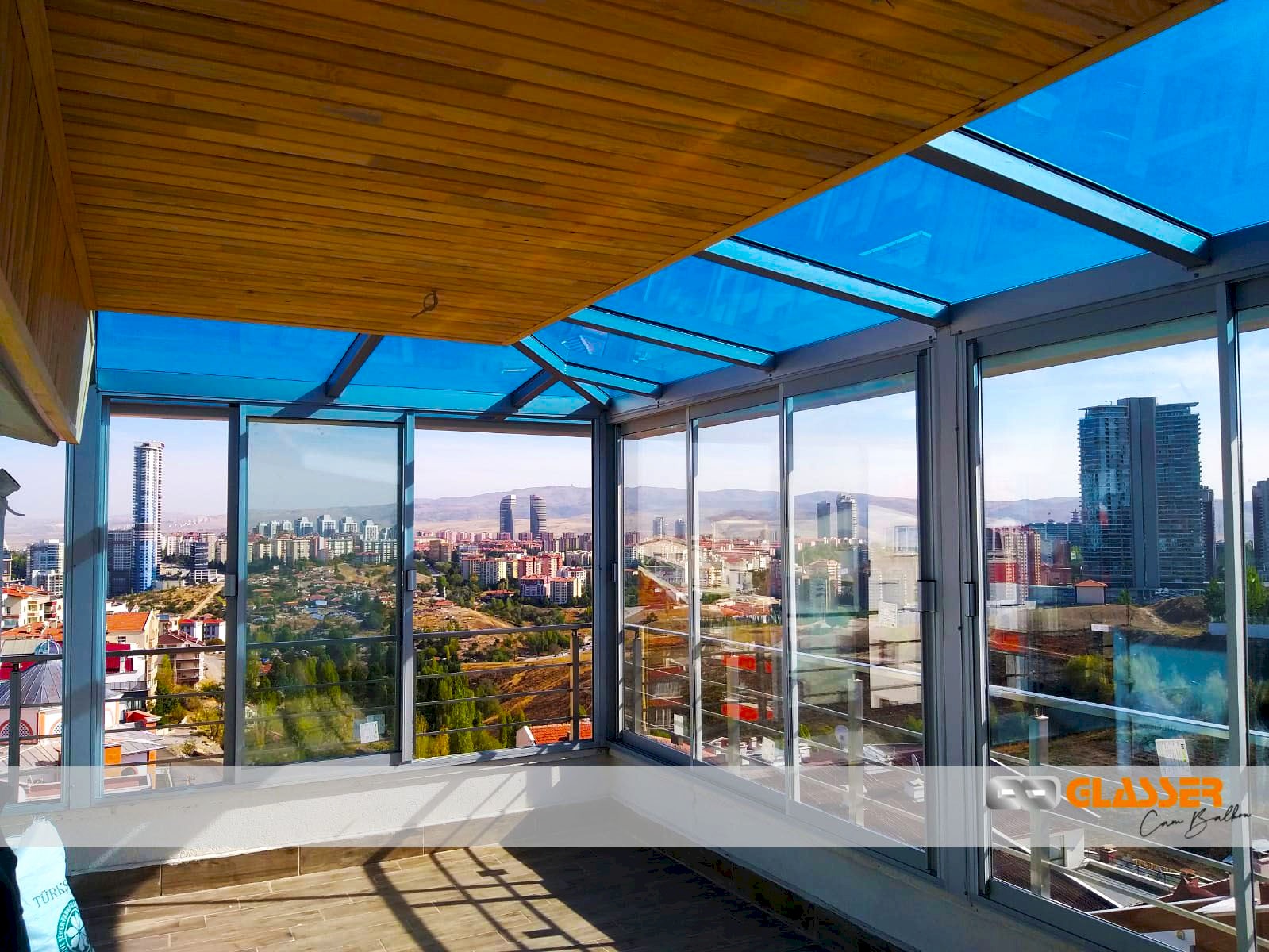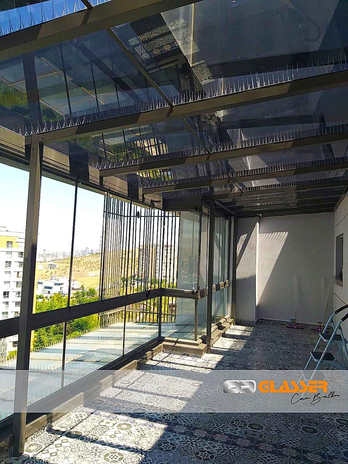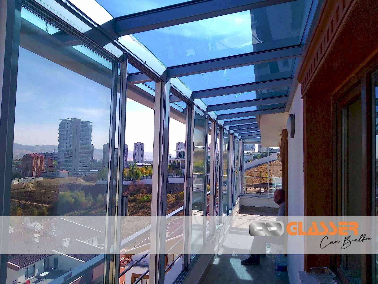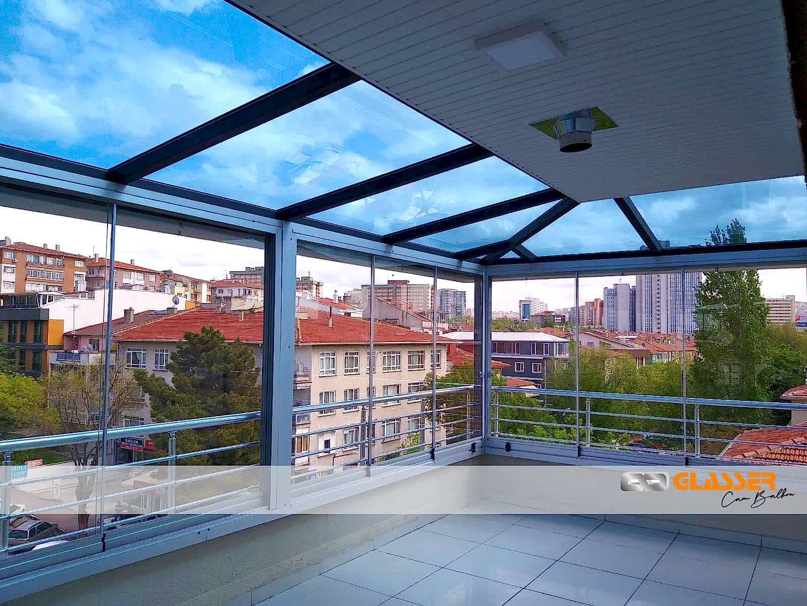 Camlı teras kapatma sistemleri özellikle güneş ışığı ve enerjisi istenen yerlerde uygulanan belli oaranda güneş kırıcılı ve renkli camlar kullanılarak yapılan uygulamamızdır. Teras etrafına sürme cam, cam balkon ,alüminyum ya da pvc doğrama uygulamalarına uygun yapılmaktadır.Sistem çelik konstrüksiyonlu yapılıp kar yüküne rüzgara karşı dayanıklıdır Sistem etrafına çekme oluk yapılıp yağmur gider boru bağlantıları yapılmaktadır sisteme çatı çıkış penceresi uygulanabilir