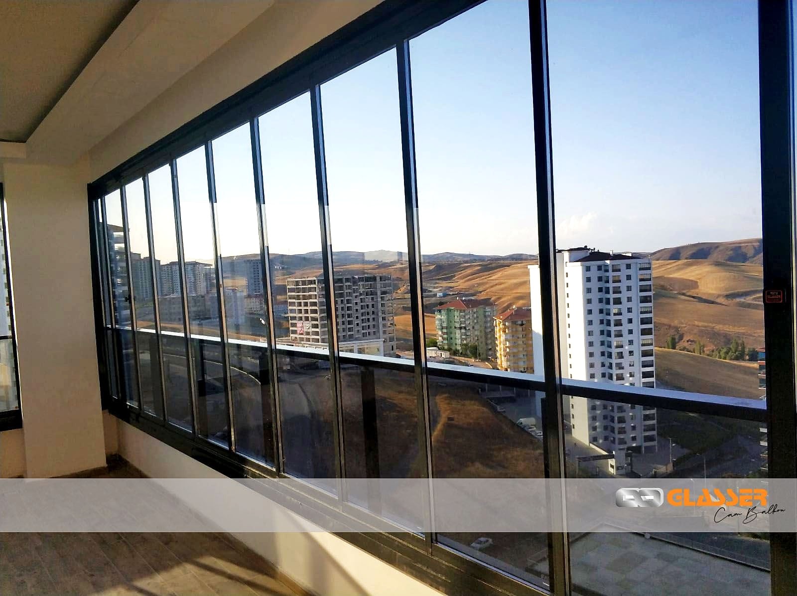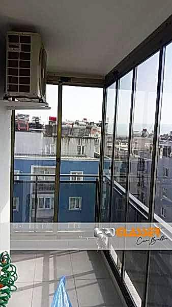 - Altta ve üste kullanılan ray profillerindeki oluk sistemi, alt iç kısımda nem tahliye kanalı, üst dışta saçak görevi görmesi ile maksimum yağmur izolasyonu sağlamaktadır. Hava şartlarından dolayı Cam Balkon da oluşan ter damlacıklarını alt rayda bulunan oluklu tahliye ile ray içerisinden dışa atarak balkon içine su sızdırmaz.